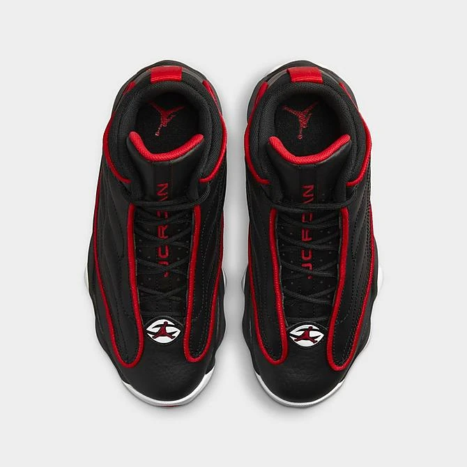 Dressed in a smooth premium leather upper, the Big Kids’ Jordan Pro Strong Basketball Shoes sports a supportive three-quarter profile with zoned padding at the tongue, collar and foam midsole. Featuring a sleek design, contrast piping frames the quilted sides for elevated style. While the partially concealed lace-up vamp creates a clean look. Finished with pops of color and signature branding, these kicks perform on the court and flexes off the court.