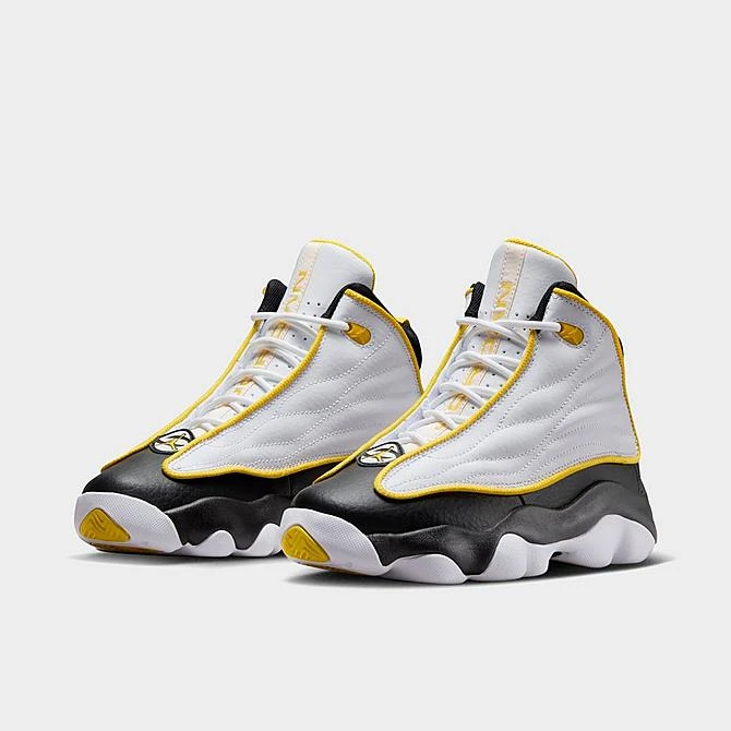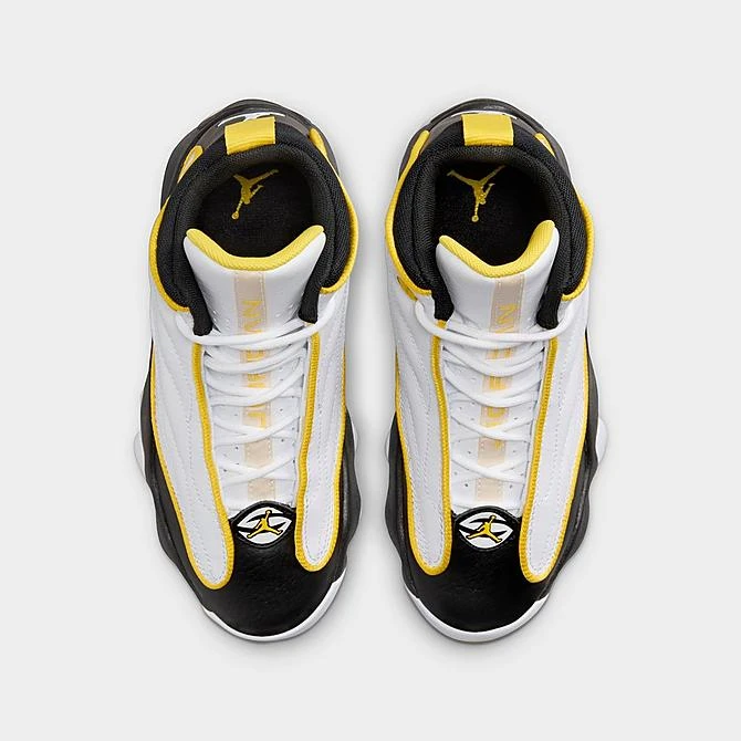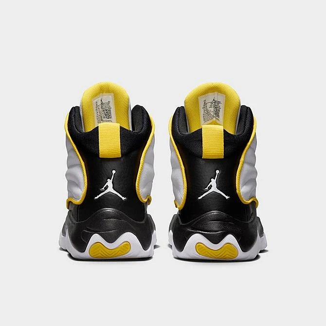 Dressed in a smooth premium leather upper, the Big Kids’ Jordan Pro Strong Basketball Shoes sports a supportive three-quarter profile with zoned padding at the tongue, collar and foam midsole. Featuring a sleek design, contrast piping frames the quilted sides for elevated style. While the partially concealed lace-up vamp creates a clean look. Finished with pops of color and signature branding, these kicks perform on the court and flexes off the court.