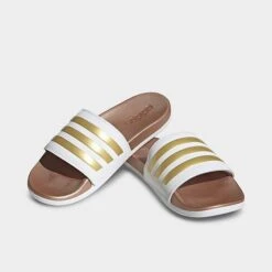 Women’s Adidas Adilette Comfort Slide Sandals White/White/Matte Gold – H03618Â 100