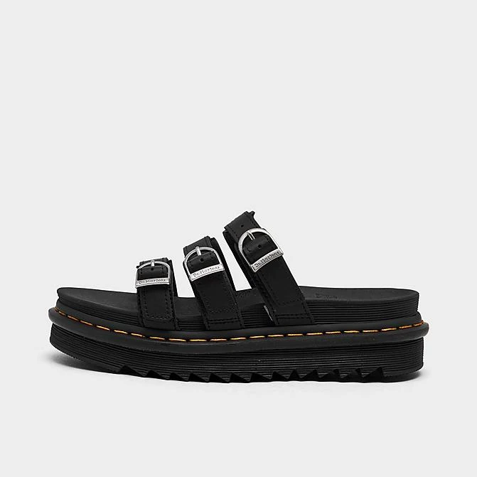 Docs does the slide silhouette their way with the Women’s Dr. Martens Blaire Leather Slide Sandals. These triple-strap slides are embellished with trademarked horseshoe buckles that sit atop an ultra-light EVA sole, along with the iconic yellow stitching you can recognize from a mile away.