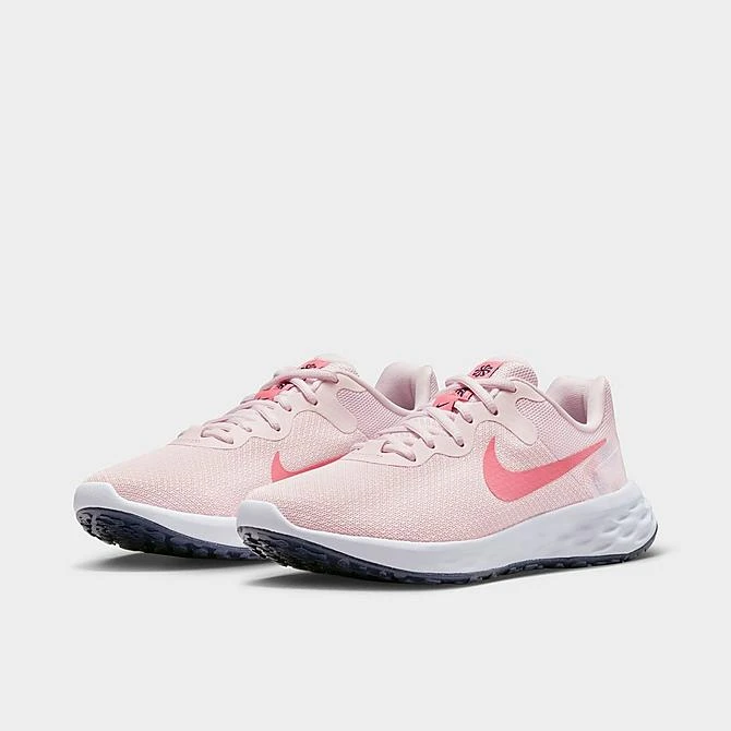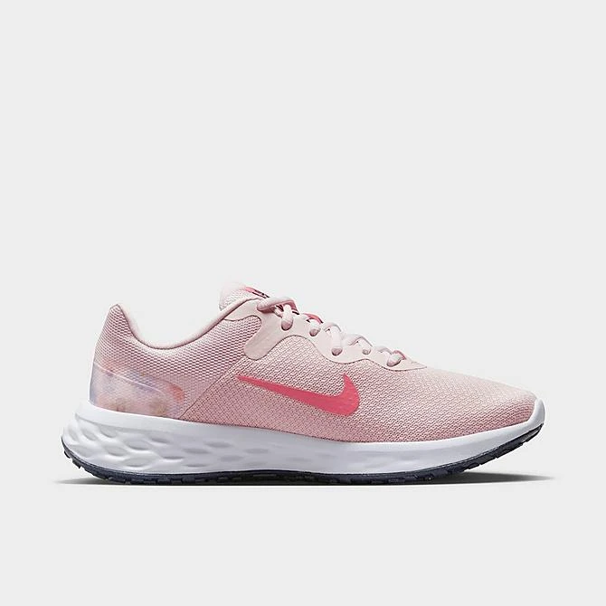 Add a spark to your runs and everyday look with the Women’s Nike Revolution 6 Next Nature Premium Running Shoes. Created using a more sustainable process, these sporty-casual sneakers provide athletic support and all-day comfort to be your next favorite do-it-all pair of kicks. A soft and subdued color scheme with a watercolor-esque effect embeds a summery sensation in these special edition sneakers.